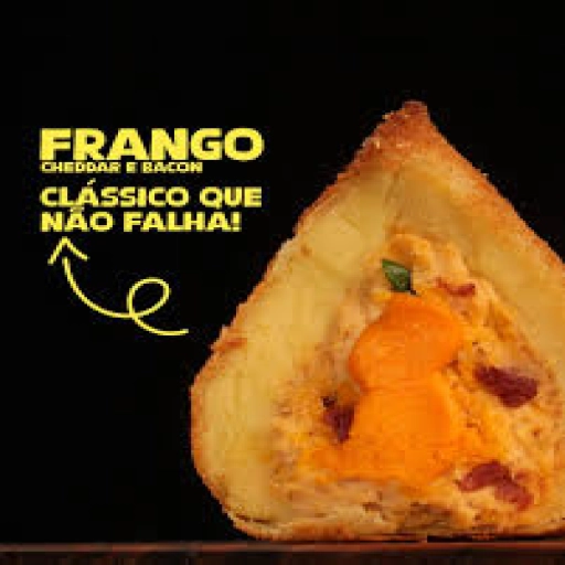 Coxinha com 360g aproximadamente de Frengo C/ cheddar e Bencon.